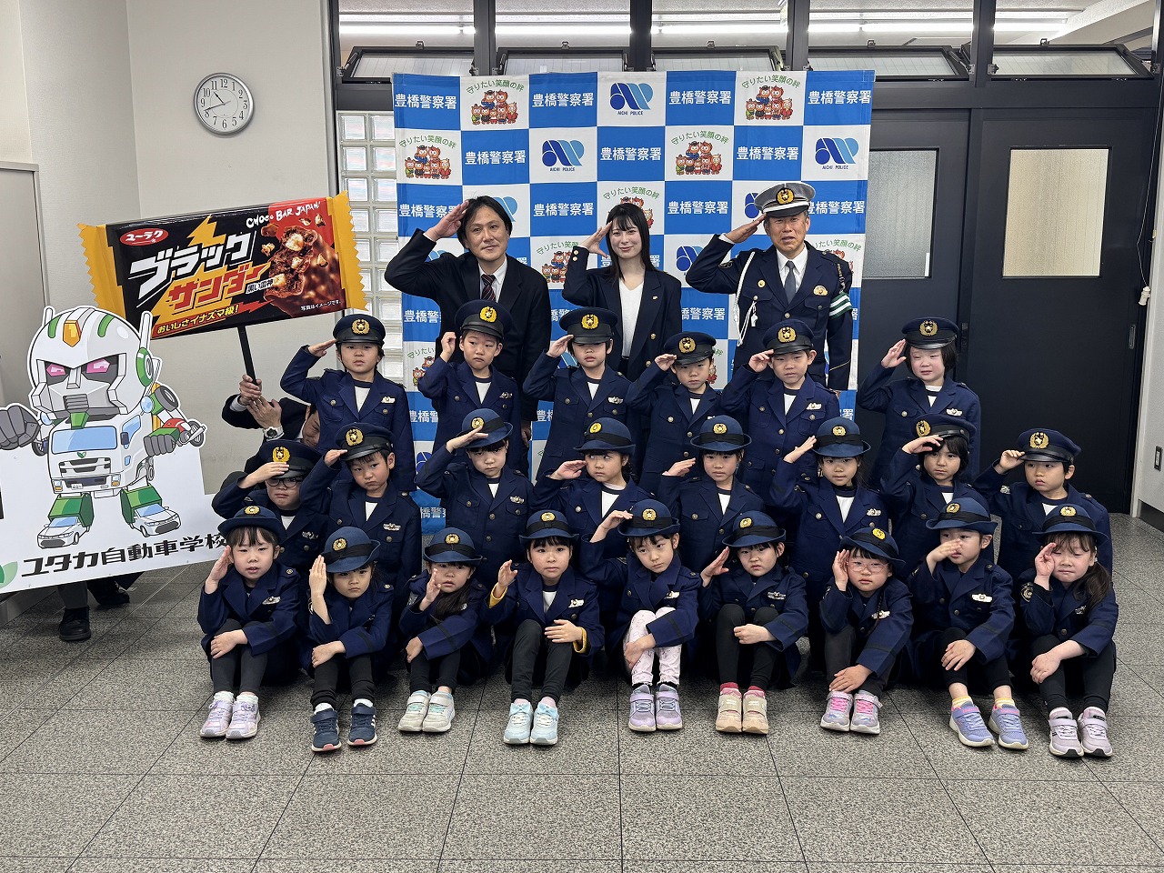 2月14日(金) ユタカ自動車学校ロビーにて、豊橋警察署様、豊橋交通安全協会様、有楽製菓株式会社様、た…