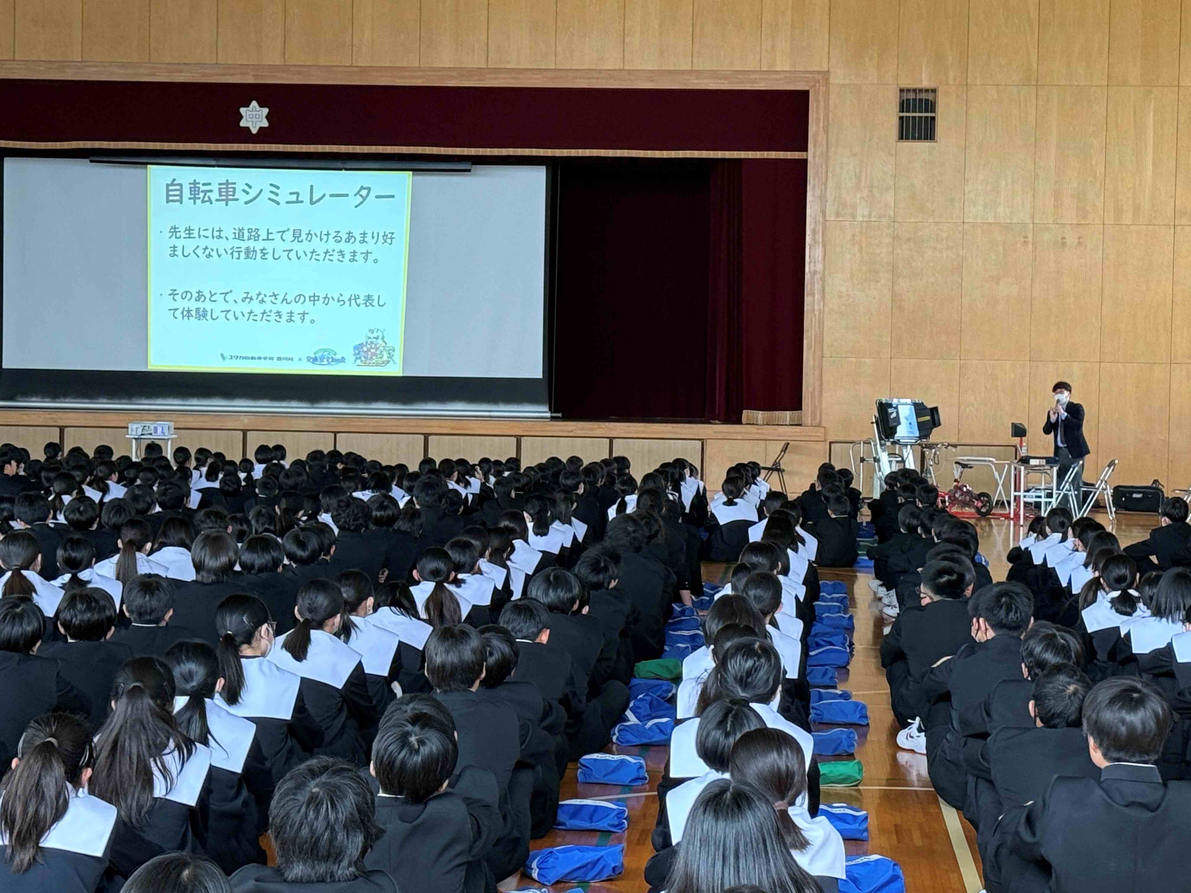 3月13日(木) 桜丘中学校、2年生の皆様76名を対象に交通安全教室を実施しました。 ・交通ルー…