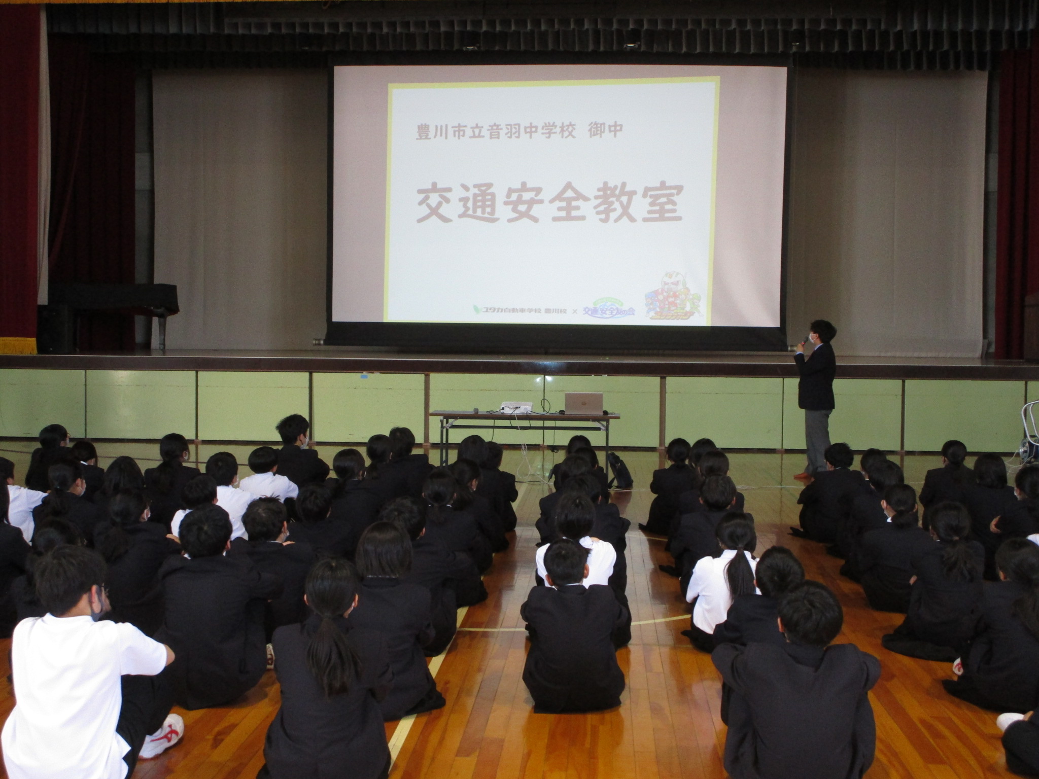 4月19日(金) 豊川市立音羽中学校、1年生の皆様を対象に交通安全教室を実施しました。 ・交通ルール…