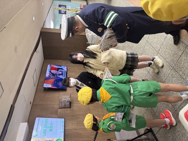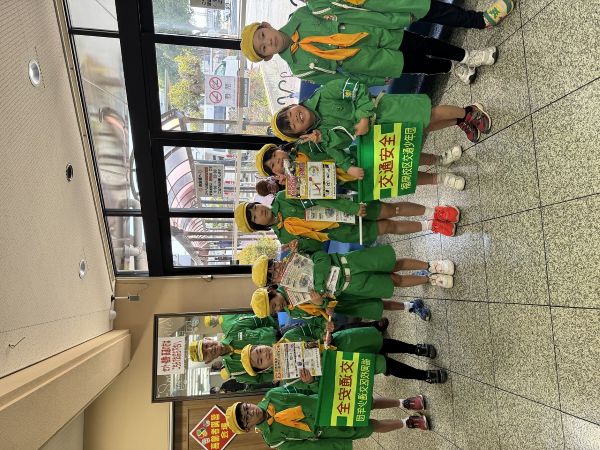 福岡小学校交通少年団、豊橋警察署と協同して、交通安全啓発運動を行いました。