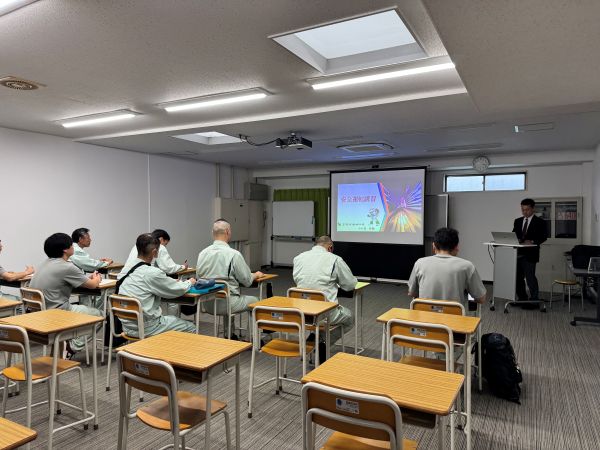 昨今の交通情勢などをお話させていただき、後半は危険予測ディスカッションを実施しました。愛知県内の交通死亡事故は年々減少しており、それが実現できているのも一人一人の安全意識の積み重ねであるとお伝えさせていただきました。この講話が安全運転のお役に立つことができたら幸いです。お疲れ様でした。
